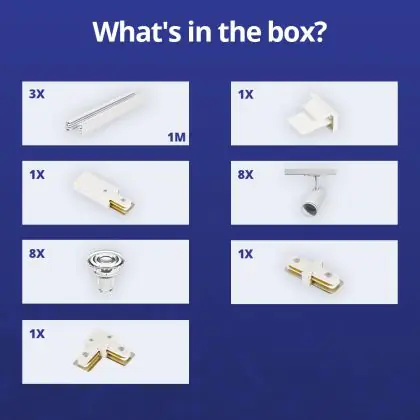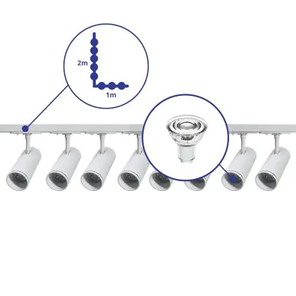 | Fabrikantnaam | Complete L shaped 1-Phase Track Set White incl. 8x Spot fixture + GU10 2700K 3W Dim – 1 x 2 meters i | |