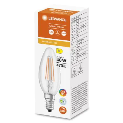 Ledvance Superior Classic LED E14 Gebogen-Tip Kaars Filament Helder 3.4W 470lm - 940 Koel Wit | Dimbaar - Beste Kleurweergave